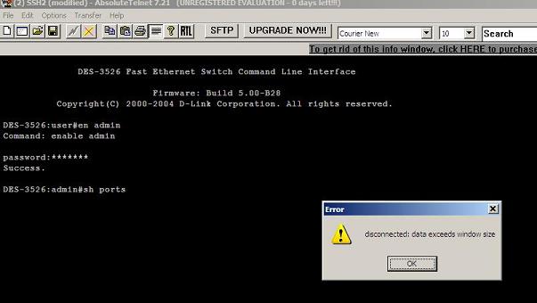 every time I enter a command with a lengthy output i get this message. To which it just closes the connection and the program.