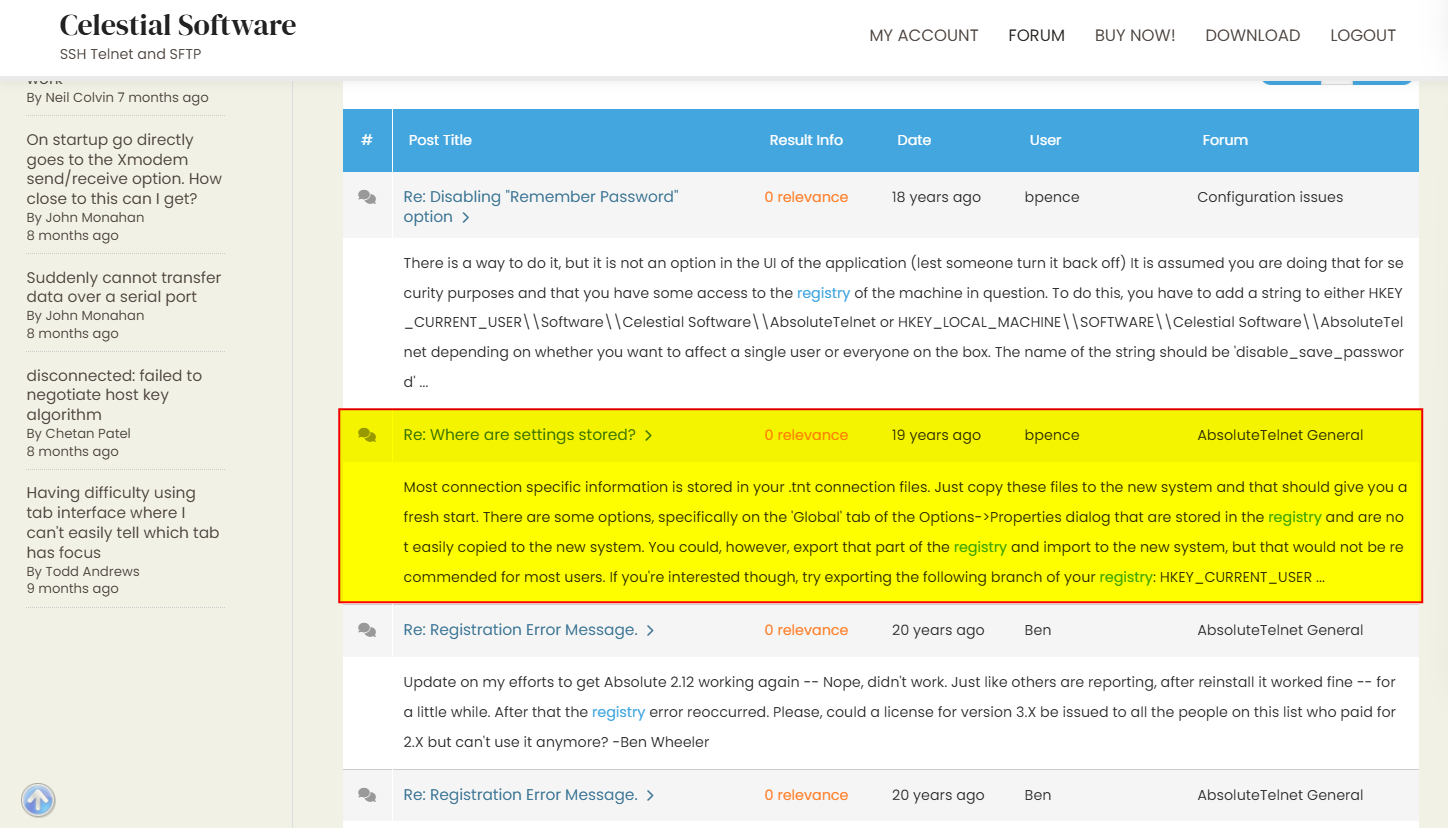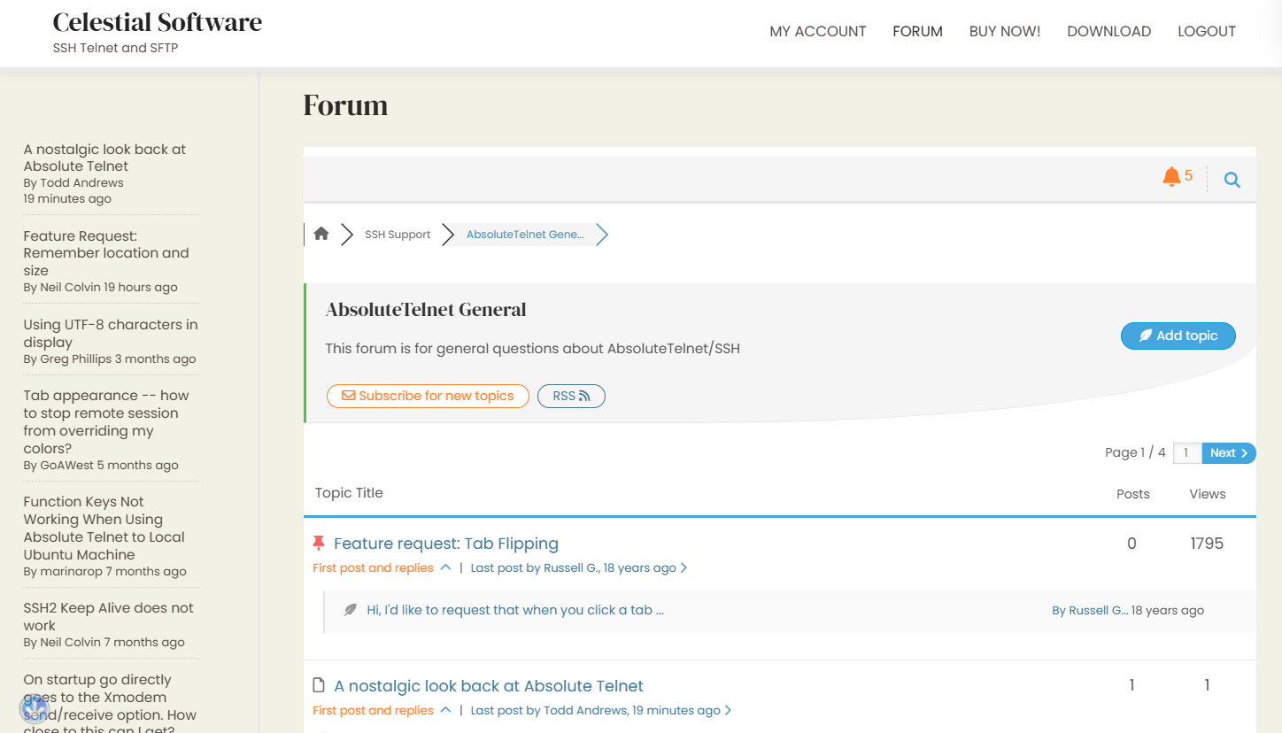 It has a URL of: https://www.celestialsoftware.net/community/absolutetelnetgeneral/#post-473
